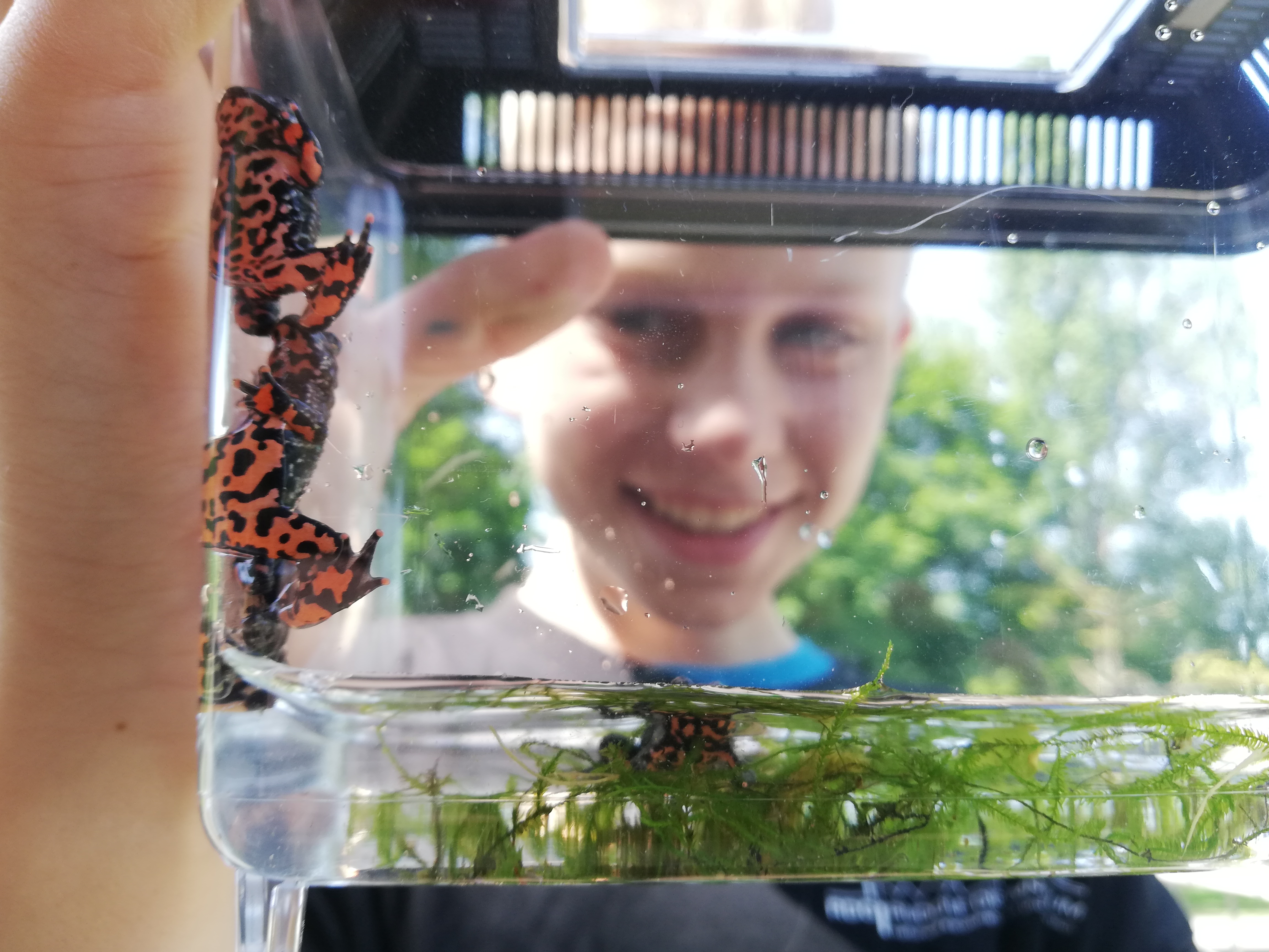 Mattis with offspring of the Oriental fire-bellied toad. The pupil from the Rudolf Diesel Gymnasium in Augsburg is taking part in the CC octopus project with his elective course in terraristics. | Markus Pfister